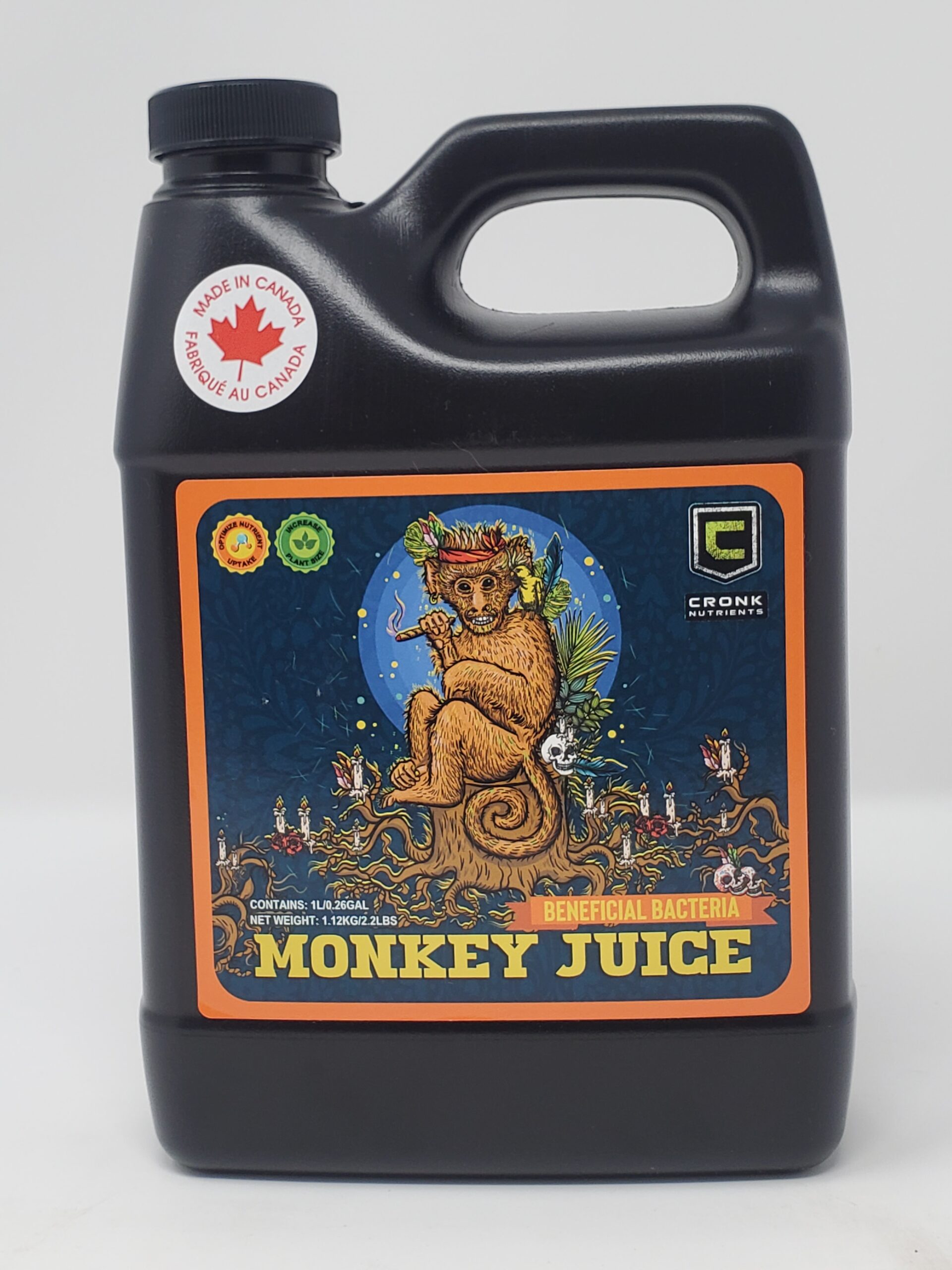 Cronk Nutrients Monkey Juice is a premium microbial supplement formulated to supercharge your root zone with beneficial bacteria. By enhancing soil biology, Monkey Juice increases nutrient availability, improves root health, and supports strong, resilient plant growth.