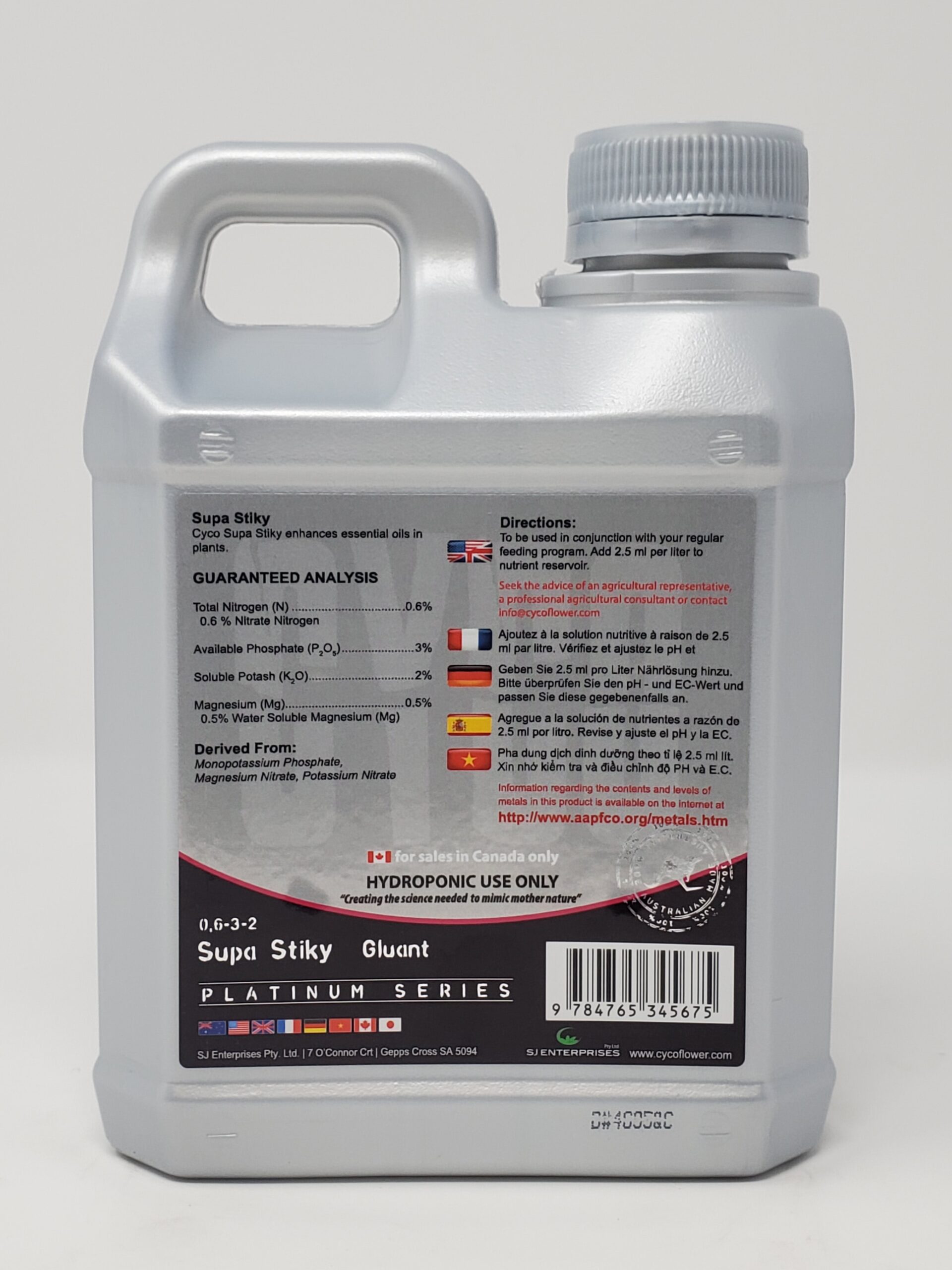 Cyco Platinum Series Swell is an additive that is used solely in the flowering stage of growth, specifically only the last three weeks before harvest. Cyco Swell utilizes suitable amounts of the highest quality phosphates available during the last three weeks of a plants flowering or fruiting stage to provide the very best harvest size and quality. Phosphorus is a key element in increasing stalk and stem strength while improving fruit and flower production during a plants reproductive cycle. Cyco Swell is a complementary source of potassium as well. In the flowering stage of a plants growth, potassium works to bring sugars into the various parts of the visible plant which includes the fruit allowing for naturally sweeter harvests.