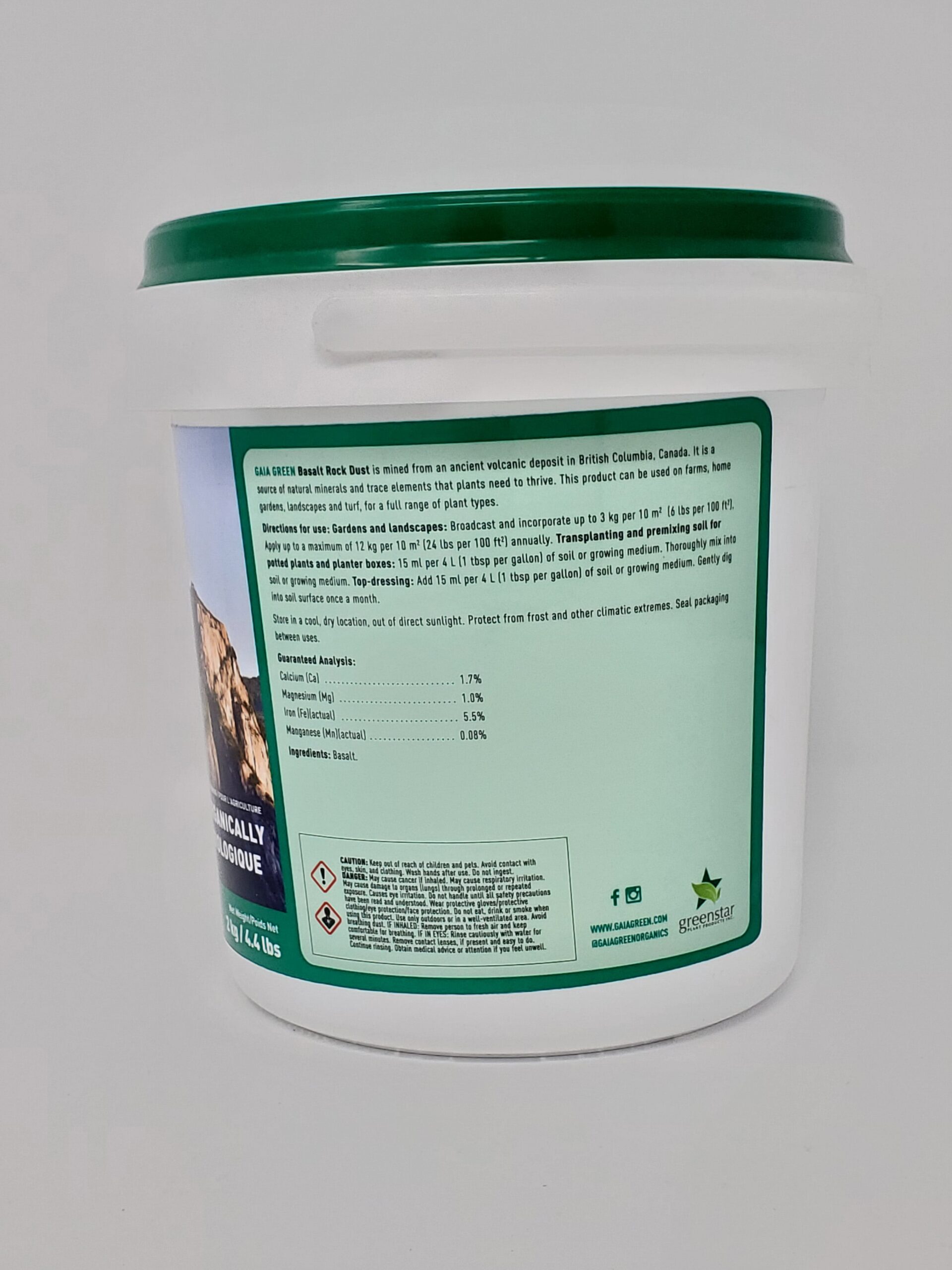 Gaia Green Organics Basalt Rock Dust is a natural soil amendment sourced from ancient volcanic deposits in British Columbia, Canada. This powerful mineral product provides essential nutrients and trace elements that plants need to thrive. Rich in calcium, magnesium, iron, and manganese, it replenishes depleted soils, enhances microbial activity, and promotes strong plant growth.