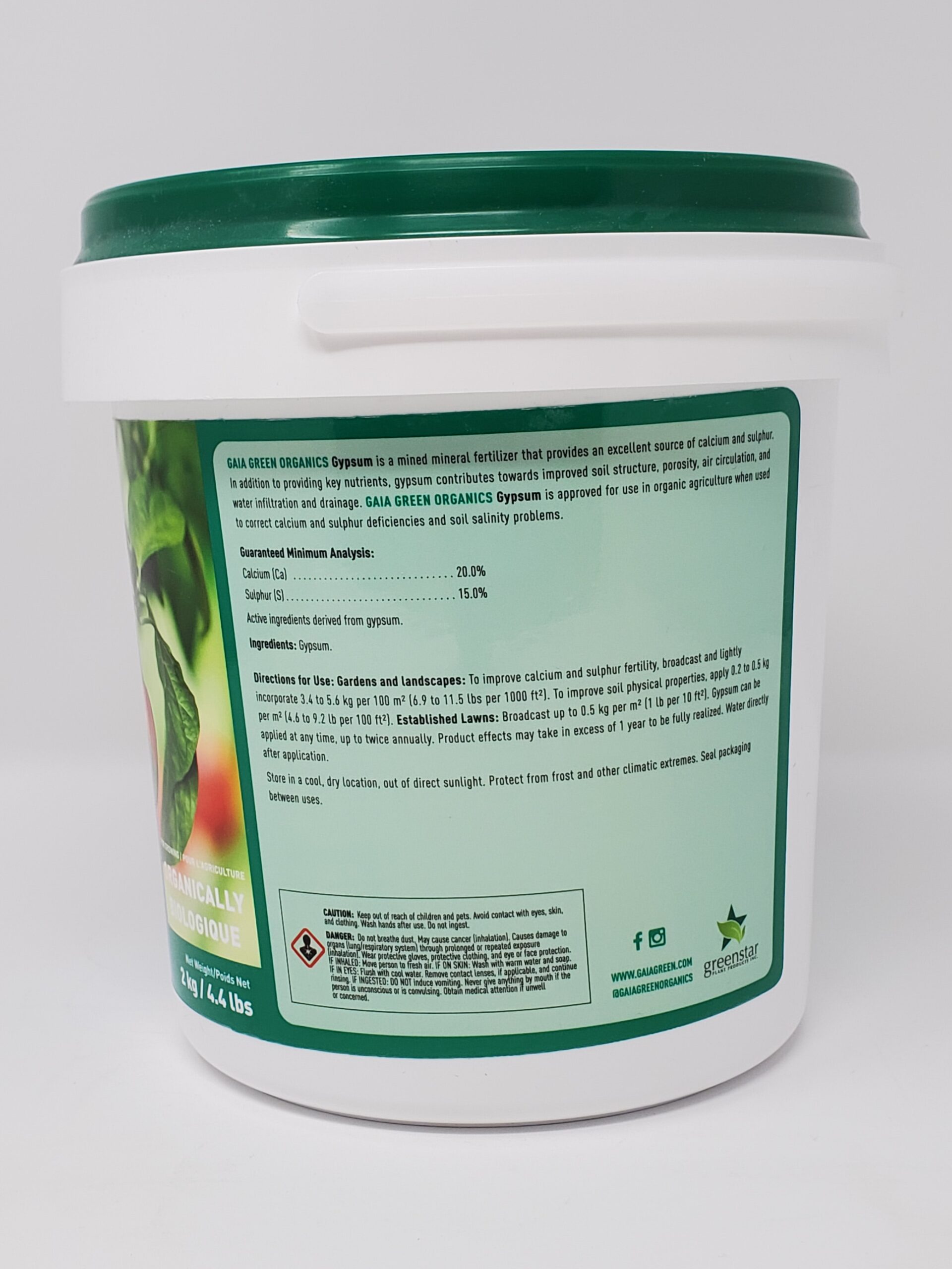 Approved for use in organic gardening, Gaia Green Gypsum is gentle on plants and effective in promoting healthier soil and stronger growth. It is highly recommended for lawns, vegetable gardens, landscapes, and established turf.